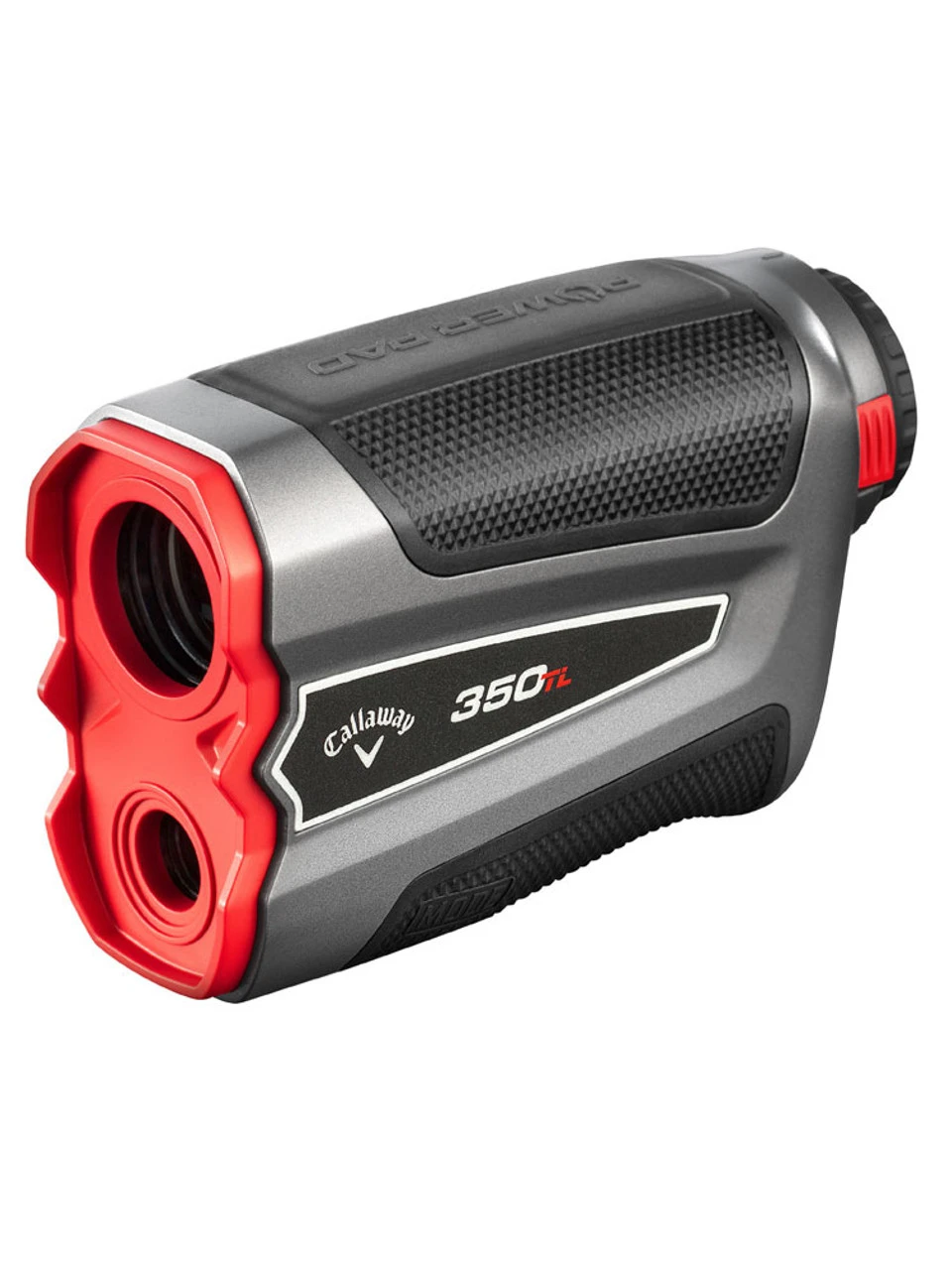 Buy Callaway 350TL Laser Rangefinder online at GolfBox. Slope technology: Measure adjusted distance due to the angle of incline/decline (eye piece switch to turn on/off). P.A.T. (Pin Acquisition Technology) with Pulse Technology delivers a short vibration when the laser hits the pin. Lock on to the pin up to 300 yards away!. Magnahold: integrated magnets allow for quick access and storage on golf carts. Scan landscape to acquire multiple targets. 6X Magnification; Range 5-1000 yards